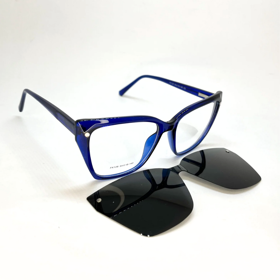 O modelo clip-on ou dois em um, conta com um clip de encaixe que transforma seus óculos de grau em óculos de sol!