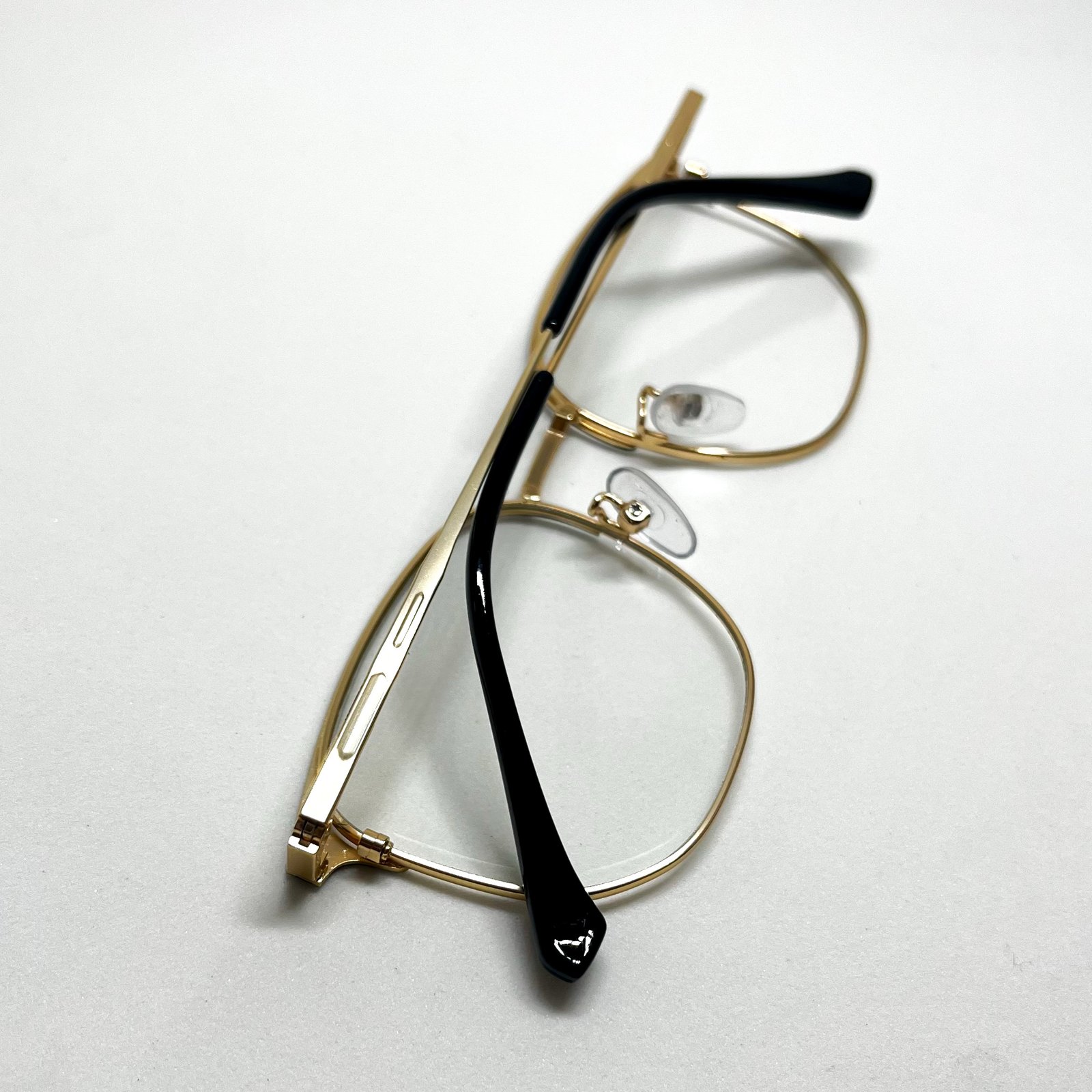 A Taylor é uma armação unissex em metal dourado com detalhes pretos, que combina elegância moderna com um toque urbano e dramático.